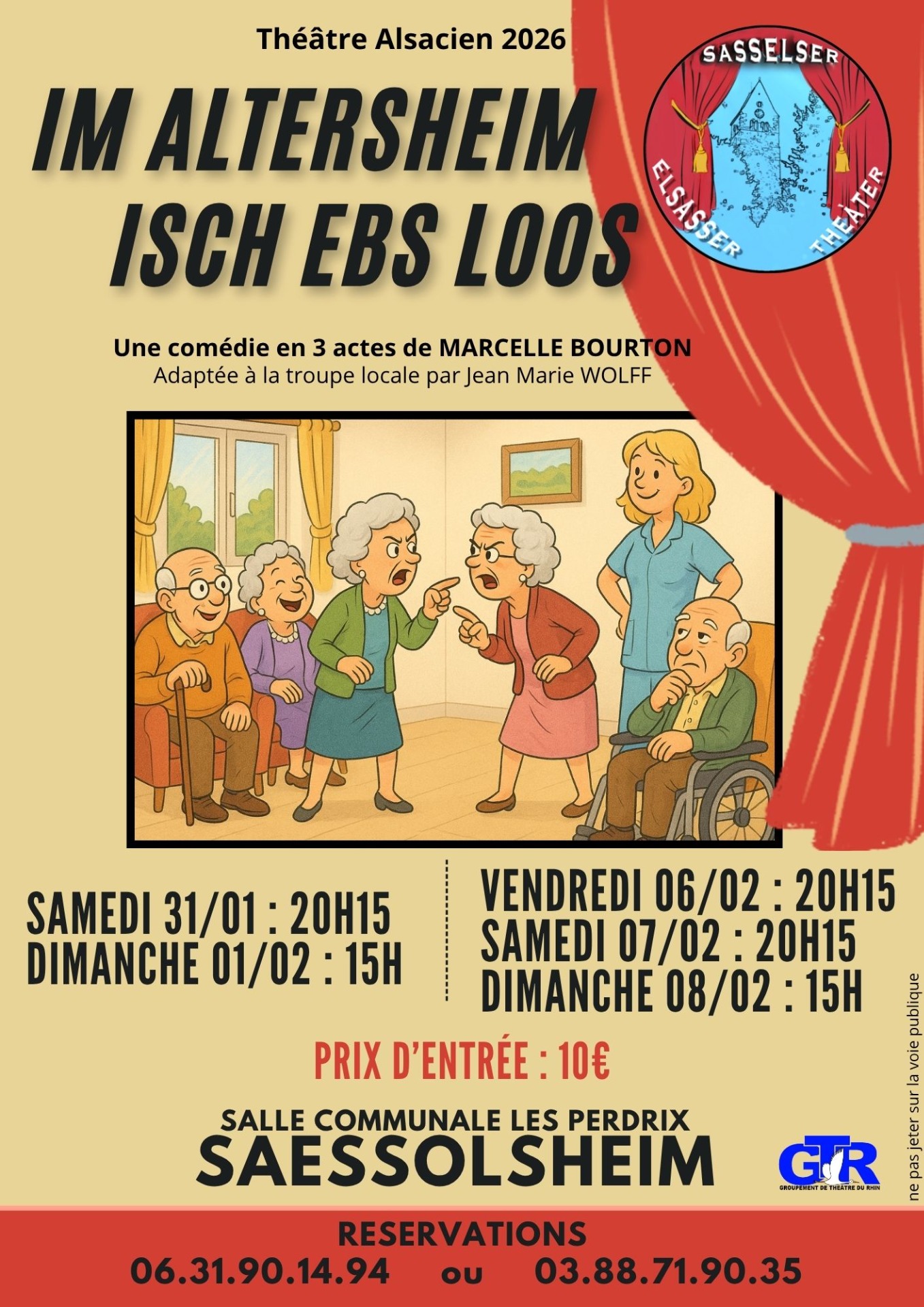 Les trois coups de la reprise des répétitions ont sonnés. La troupe du Sasselser Elsasser Theàter remonte sur les planches. Cette année, c'est une pièce de Marcelle Bourton " Im Altersheim isch ebs loos " Qui est au programme.